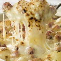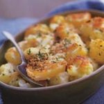Положить в невысокую форму для духовки капусту и картофель. Полить сырным соусом.