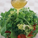 В небольшой мисочке с помощью вилки взбейте лимонный сок с солью и перцем. Продолжая взбивать, влейте оливковое масло. К полученной смеси можно по вкусу добавить немного сладкой горчицы. Эта заправка прекрасно подойдет для любых зеленых салатов.