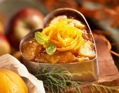 3. Выложить яблоки в жаропрочное блюдо объемом 1,5 л. Равномерно посыпать яблочный пудинг мучной смесью. Запекать в духовке в течение 20-25 мин или до золотистой корочки. Выложить пудинг в порционные тарелки. Подавать с мороженым.